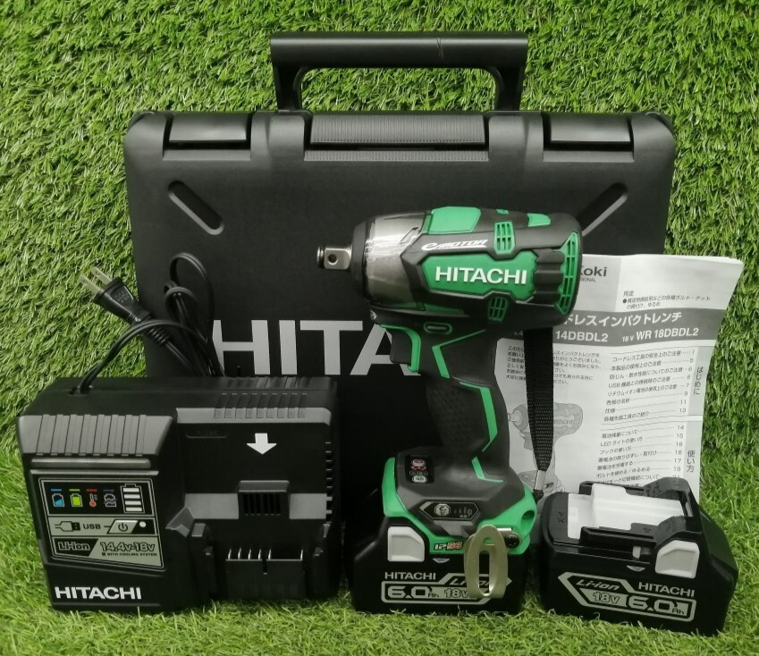 - 未使用品 長期在庫 HITACHI 日立工機 18V コードレスインパクトレンチ + バッテリー 2個 + 充電器 + ケース セット WR18DBDL2(2LYPK)
