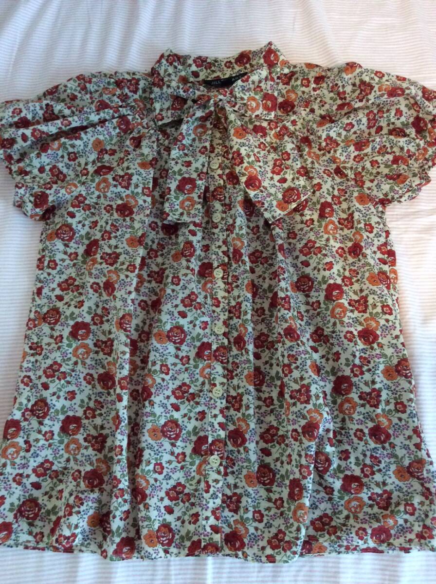 - ★秋冬デート完売大人気【JILL STUARTジルスチュアート】リバティプリント花柄リボンブラウス★パフスリーブ秋色オレンジ・リボン旅行★