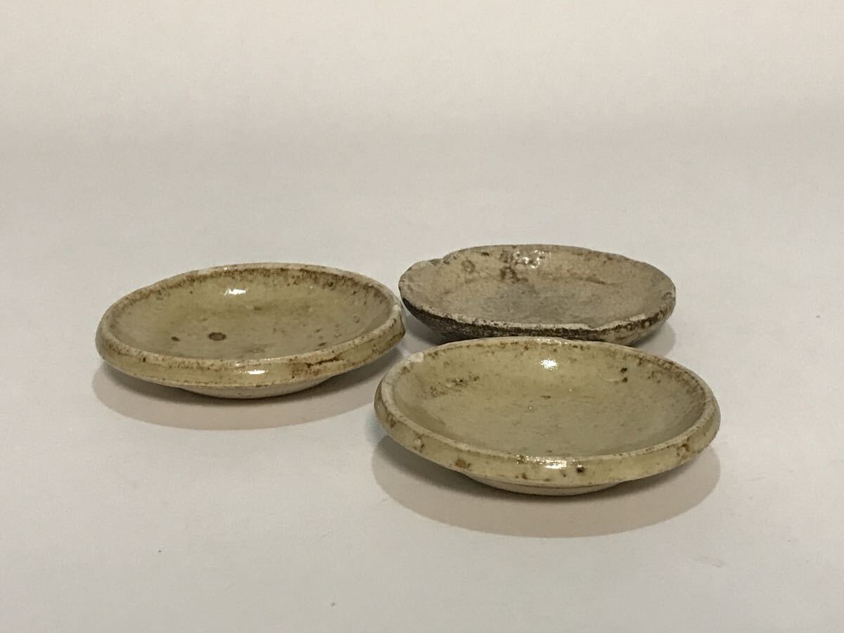 - 古美術 美濃 灰釉小皿 3点 銘々皿 時代 瀬戸