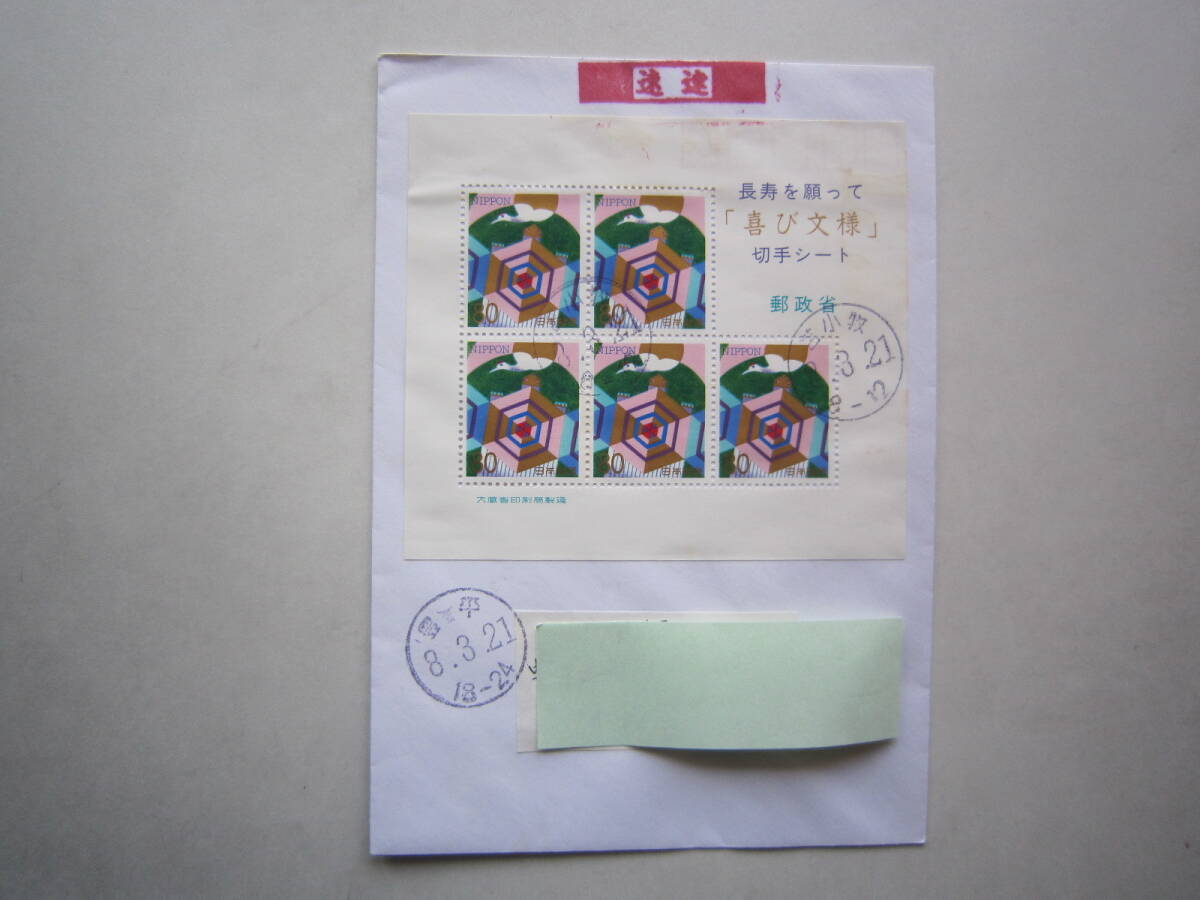 - ●速達実逓便 高齢者向け切手 「喜び文様」切手シート●