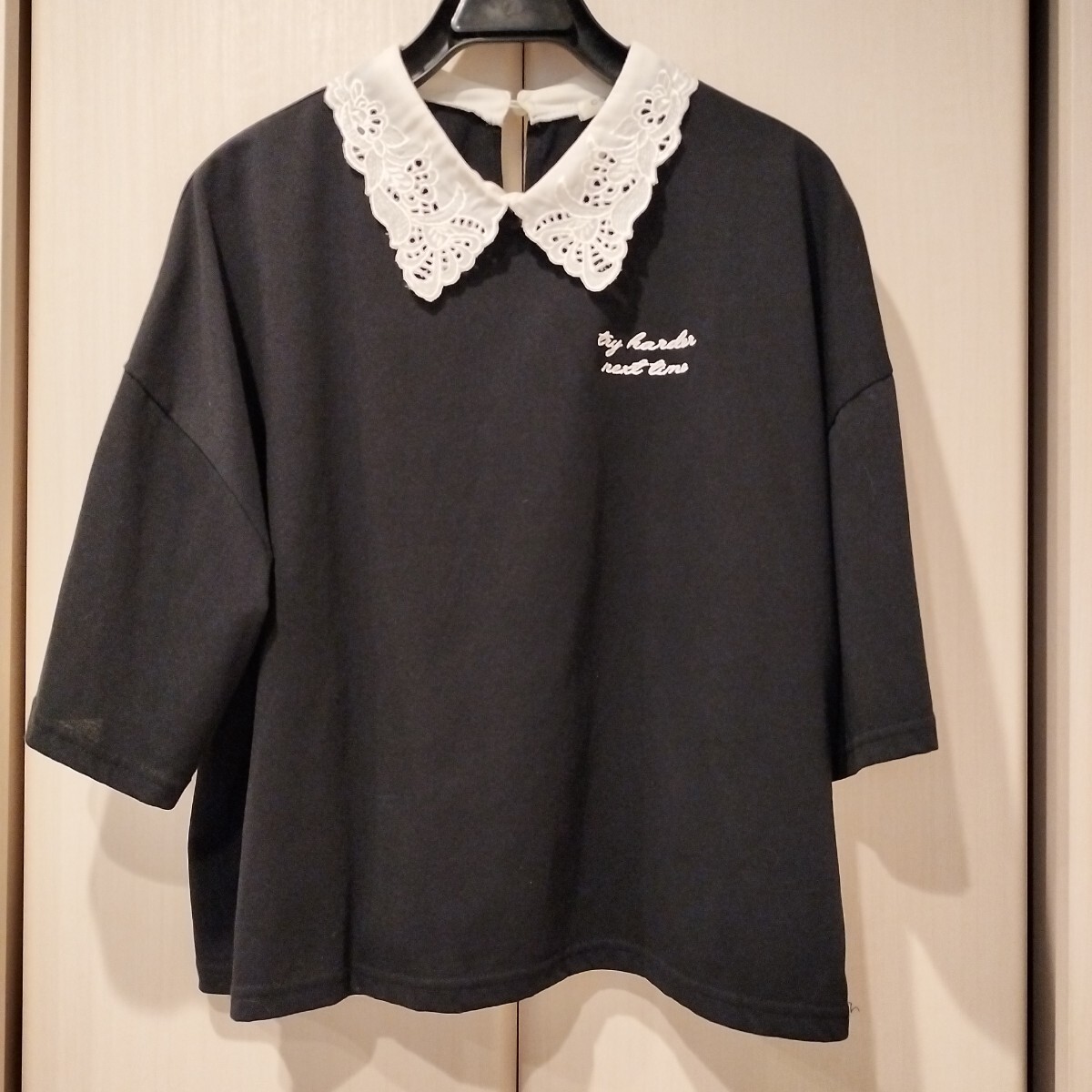 - 【Lサイズ】ハニーズ COLZA 襟付き刺繍ロゴ Tシャツ 半袖 レディース カットソー トップス 黒 白襟