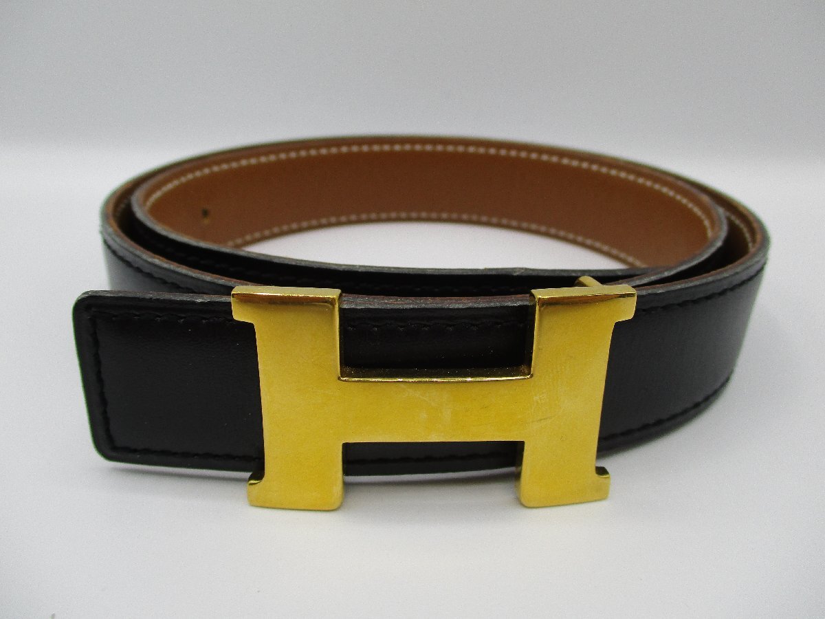 > 65【美品中古】エルメス HERMES ベルト ミニコンスタンス 〇Z刻印 ゴールド金具 レザー レディース