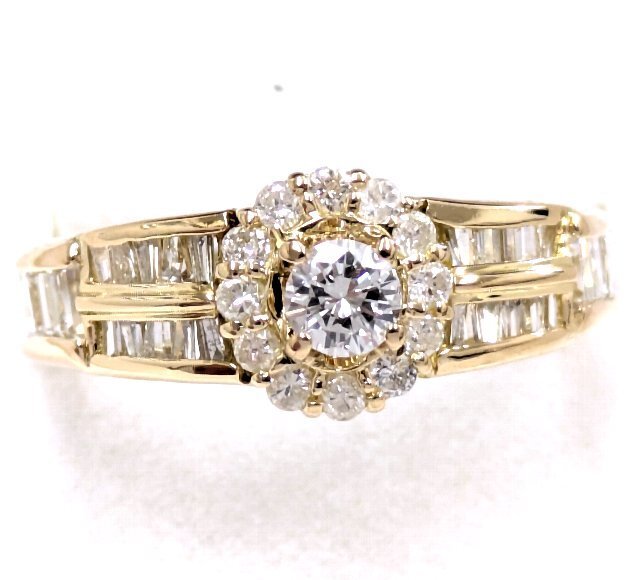 > Y9324★K18YG 天然ダイヤモンド 0.17ct 0.51ct 0.45ctリング★12号 約3.9g★洗浄済み