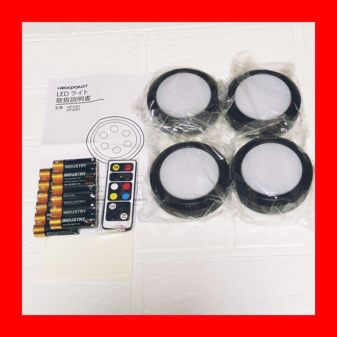 - LEDライト 4個セット 電池式 キッチンライト 明るさ調整可能 リモコン付き