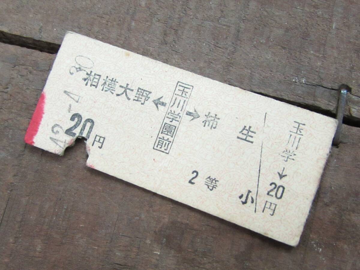 > 切符 B型硬券 2等 昭和42年 玉川学園前~20円 表矢印からの1駅ゆき 相模大野 柿生 玉川学園前駅発行 小田急電鉄 レトロ 31