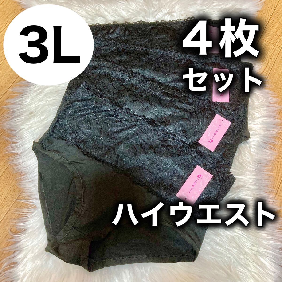> 3L XXL 2XL ハイウエスト レース ショーツ 4枚セット まとめ売り 深ばき レディース 下着 ブラック 黒 大きいサイズ 深履き パンツ