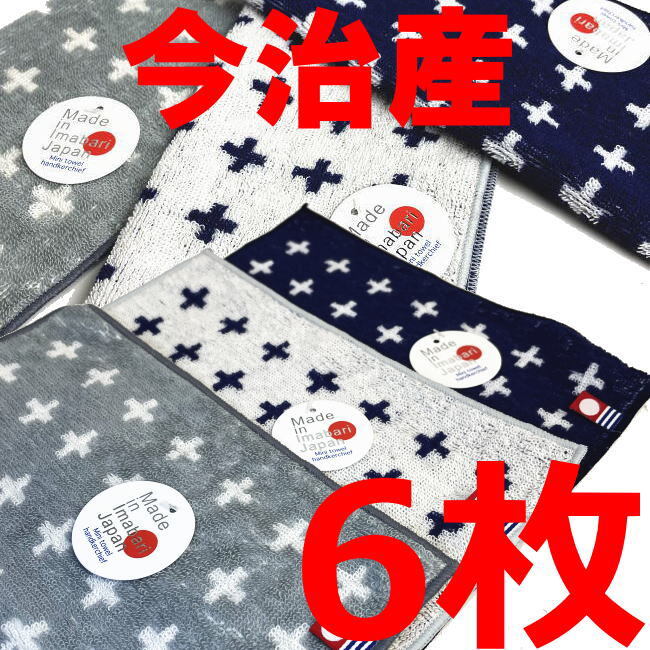 - 6枚 今治 タオル ハンカチ プラス柄 今治産 20*20 綿100 日本製