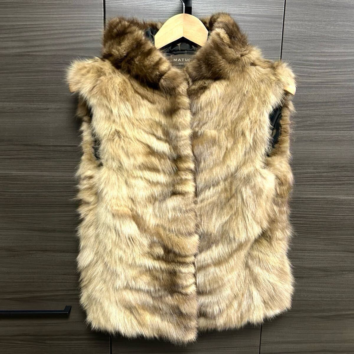 > 美品 MATUCCI マトゥッチ ファーベスト 毛皮 リアルファー ファーコート 秋冬 イタリア製 高級 フーディー アウター レディース ブラウン
