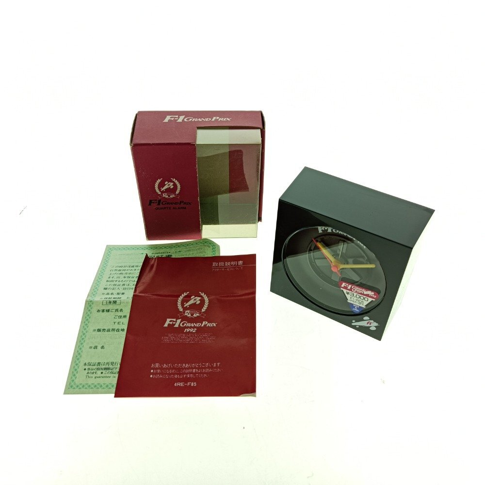 - 希少 置時計 F-1 GRAND PRIX 1992 F1-RO5 4RE516FA 黒白 タイヤモチーフ レーシング アラームクロック コレクション ジャンク 中古