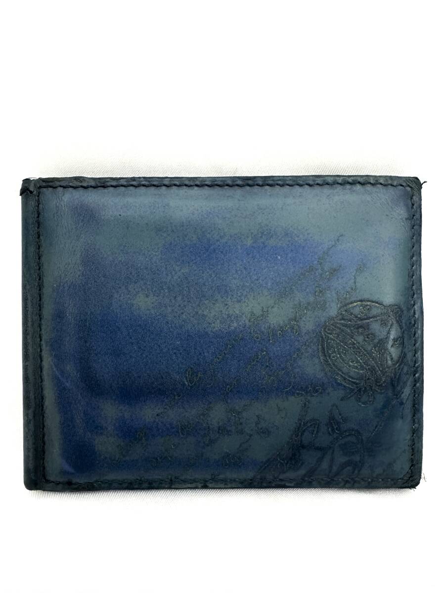 - 7I2813【本物保証】ベルルッティ 二つ折り 財布 マネークリップ カリグラフィ レザー ブルー ブラック Berluti