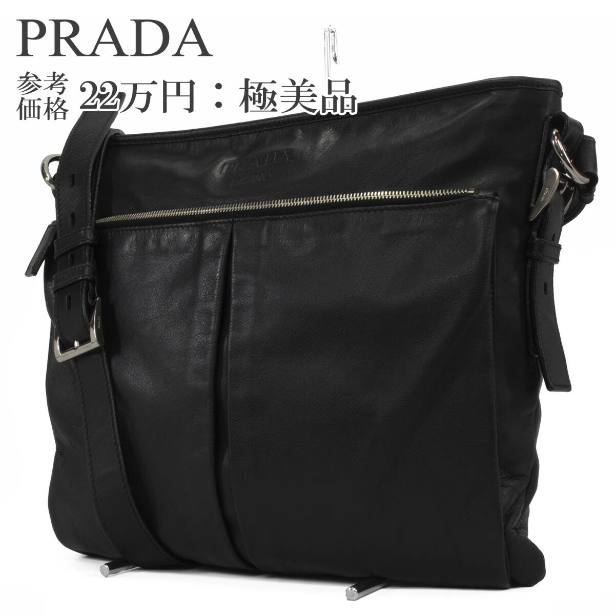> 本物 送料無料 プラダ ショルダーバッグ メッセンジャーバッグ メンズ レディース 黒 ブラック 斜め掛け ロゴ 本革 レザー 鞄 バック A846