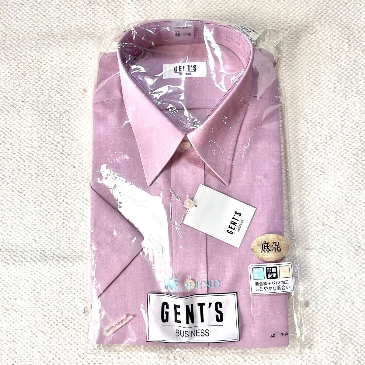 - 未使用 半袖 ワイシャツ ビジネスシャツ 無地 ドレスシャツ 防汚加工 形態安定 吸水速乾 ポリエステル メンズ 麻 40 紫系