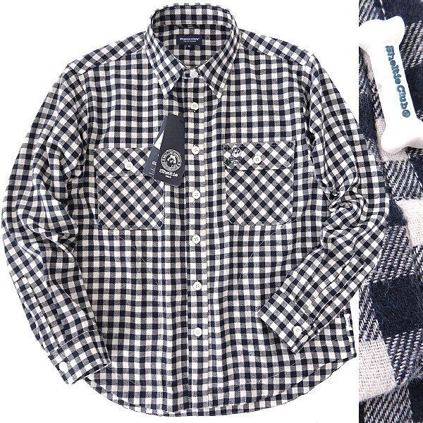 > 新品 シェルティークラブ ビエラ チェック シャツ L 紺 白 【SH1443223_79_L】 Sheltie Club 秋冬 起毛 羽織り アウター フランネル