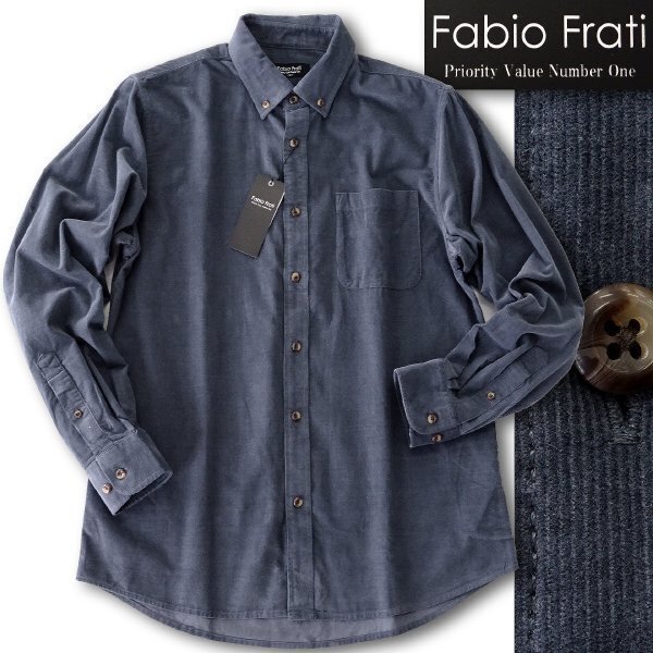 - 新品 ファビオフラーティ 極細畝 コーデュロイ ボタンダウン シャツ M 紺 【FF8W-H450_BL_M】 FABIO FRATI 秋冬 長袖 綿 コール天