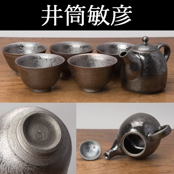 - 【千h0441】井筒敏彦 6点 (急須 1点 汲出碗 5客) 箱無 天目 天目碗 茶碗 湯呑 曜変天目 窯変天目