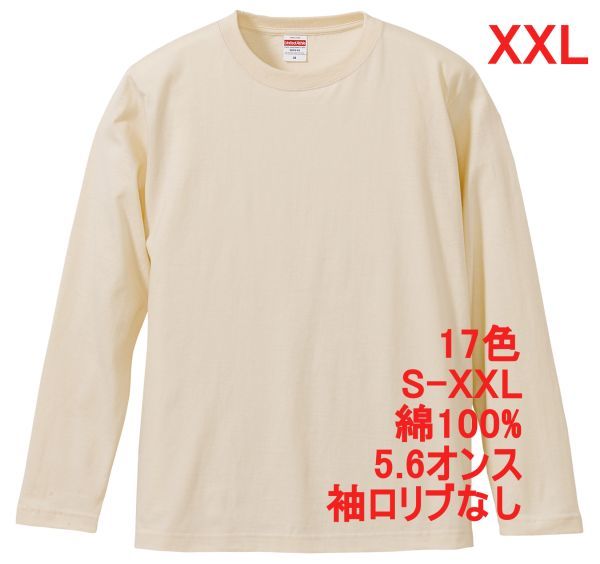 - 長袖 Tシャツ XXL ナチュラル ロンT 袖リブなし 綿100 5.6オンス 無地 無地T 長袖Tシャツ 丸首 コットン A514 3L 2XL ベージュ 501001 5010