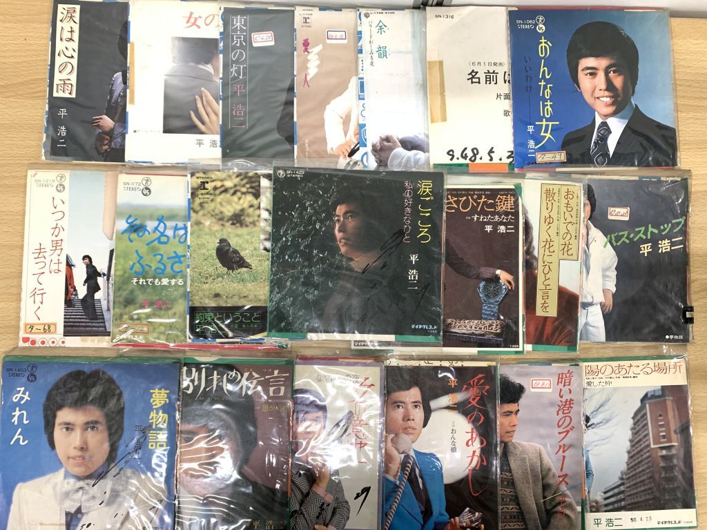 > ▲01)【1点限り!】【1円〜】【全て見本盤】平浩二のEPレコード まとめ売り20点セット/7インチ/プロモ/バス・ストップ/女の意地/さびた鍵/A