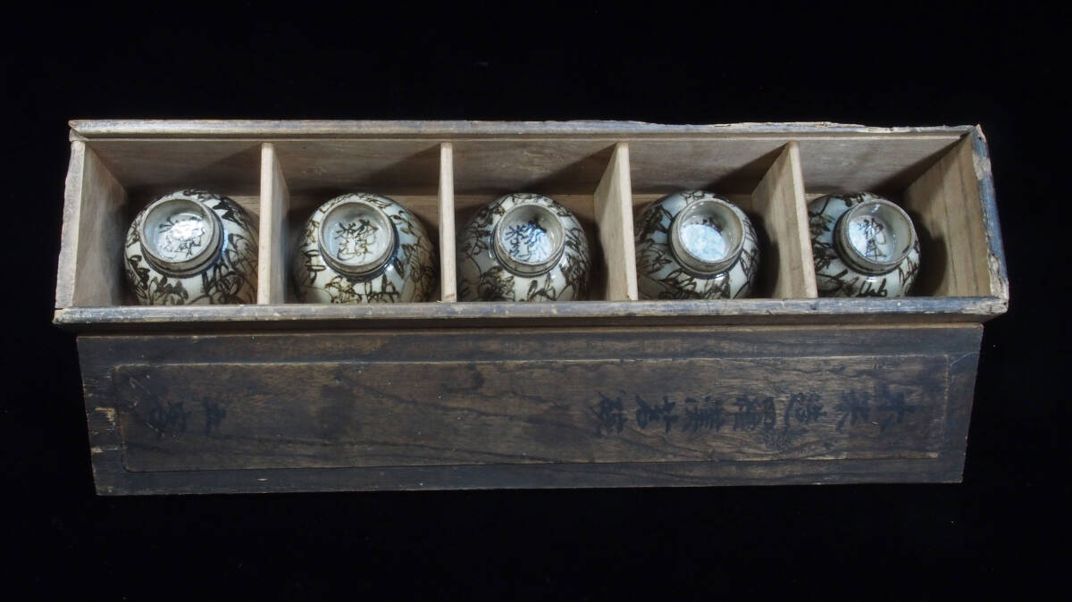 > 図録掲載品実物! 青木木米 羅漢紋 煎茶椀 五客揃い 検)茶道 急須 江戸末期京焼の名工 状態=良好