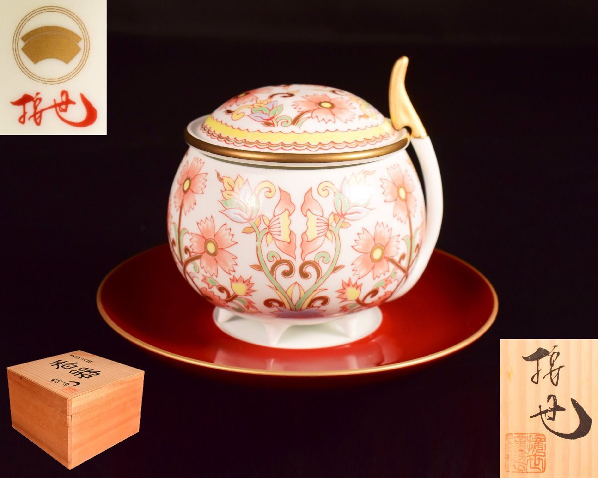 阿蘭陀更紗の模様、古伊万里の典雅さそのままの風合い、優美な曲線を持つ専用のスプーンと受皿のセットで御座います。