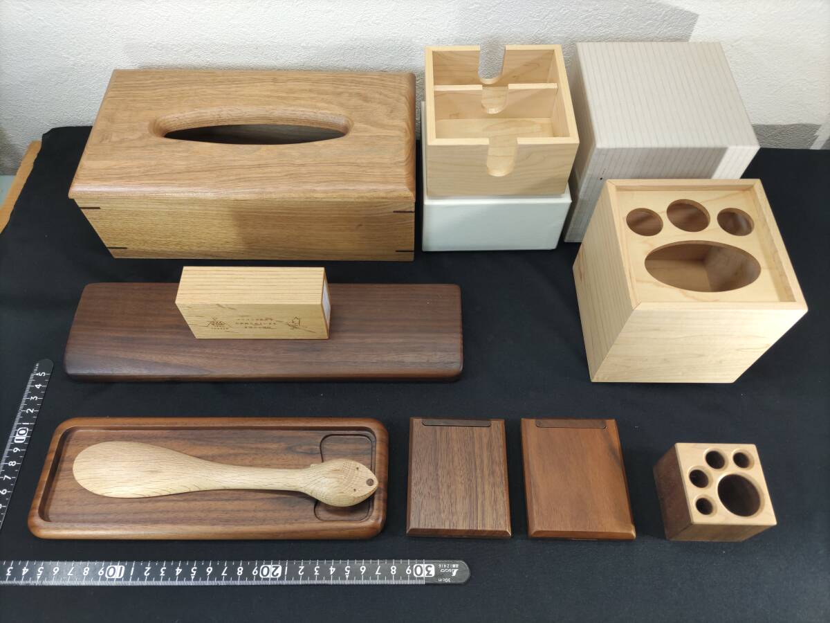 - ■送料無料!■まとめて■家具・木工の町・旭川■ティッシュケース■ペンスタンド■コンパクトミラー■木製■木工芸■10点セット!