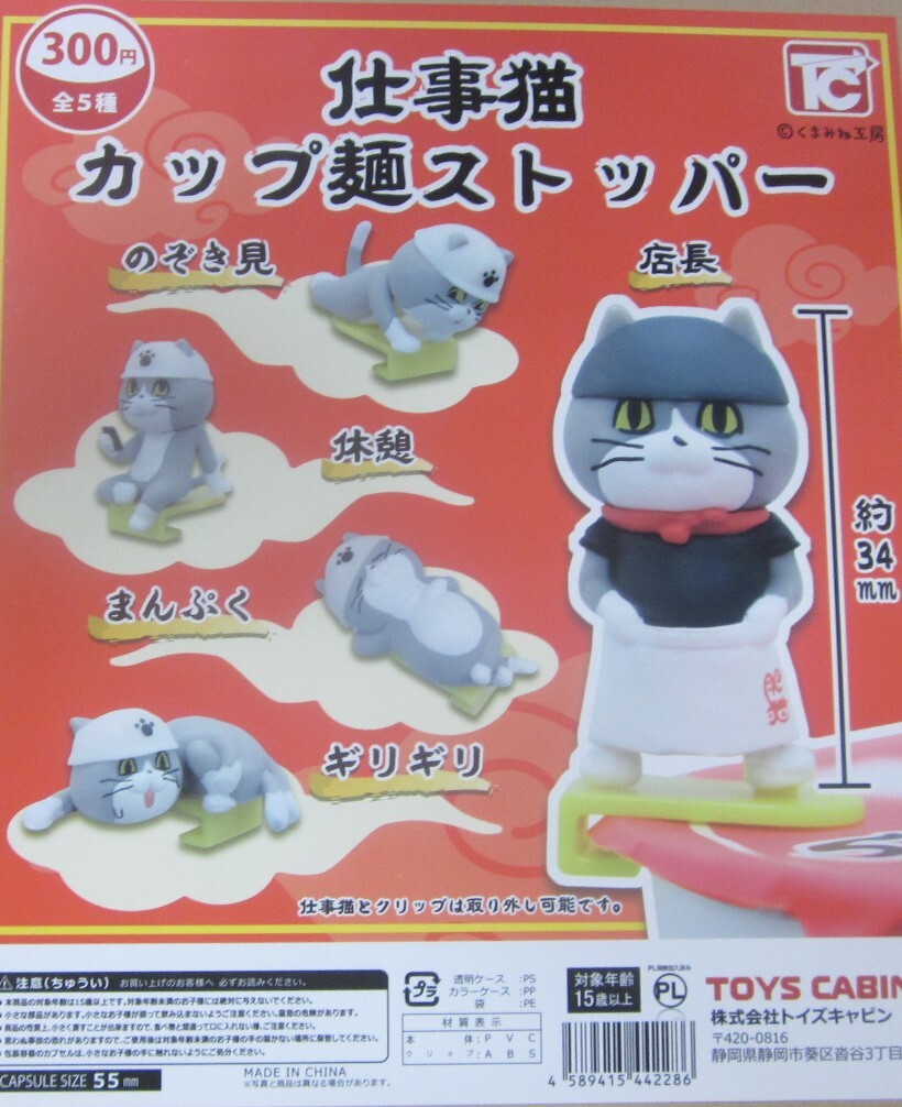 - 仕事猫 カップ麺ストッパー シークレット入り全5種セット トイズキャビン ガチャ
