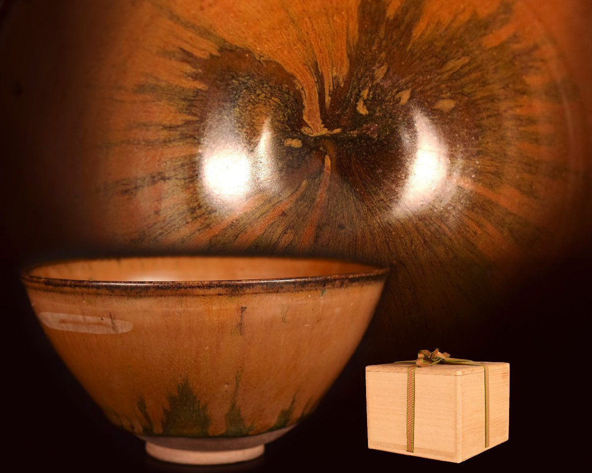 Z374 【泉美】唐物天目茶碗 建窯 抹茶碗 茶道具 共箱入