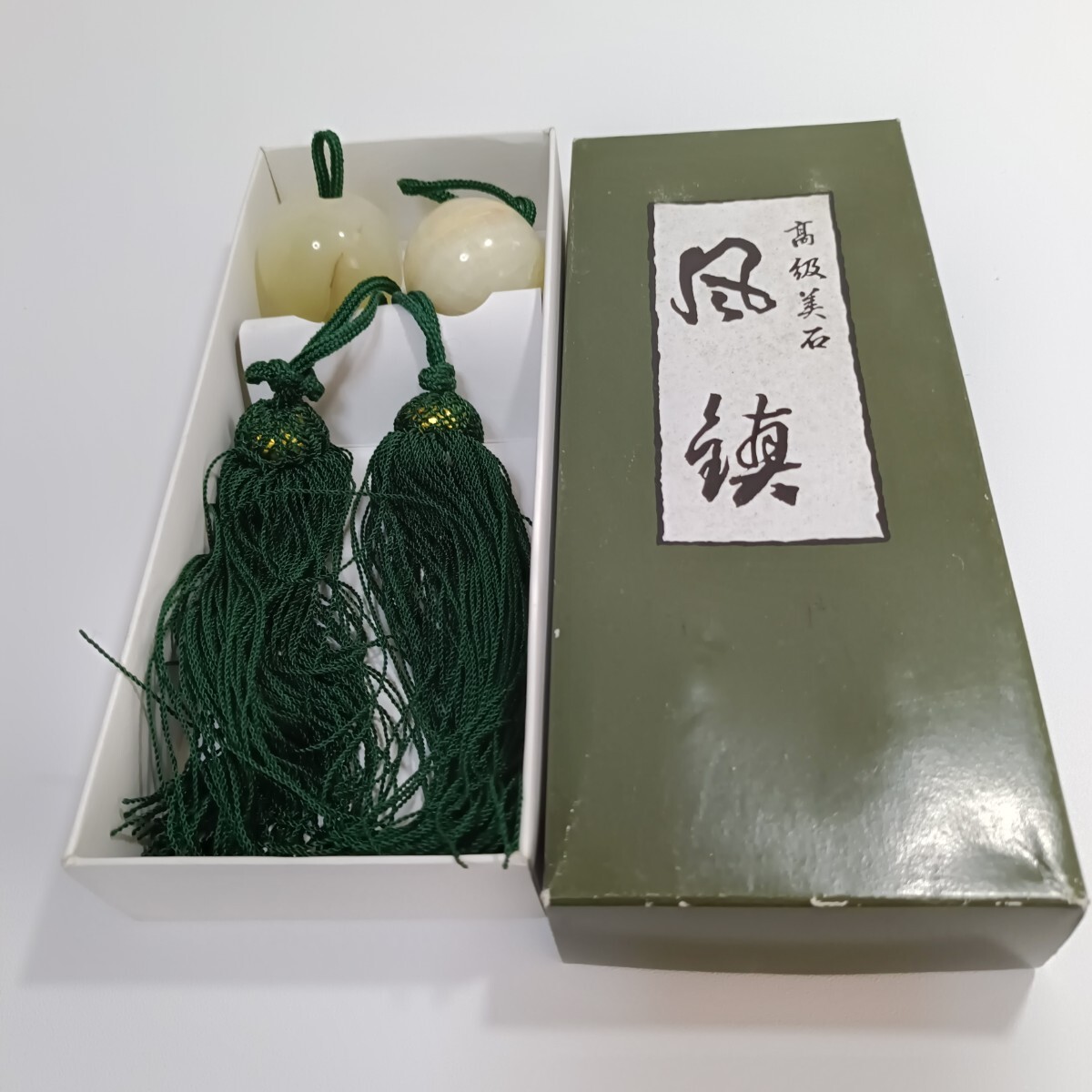 - 最高級 高級美石 オニックス 縞メノウ 風鎮 ダークグリーン系 房 [ 掛け軸 掛軸 天然石 飾り 床の間 濃緑房] A42