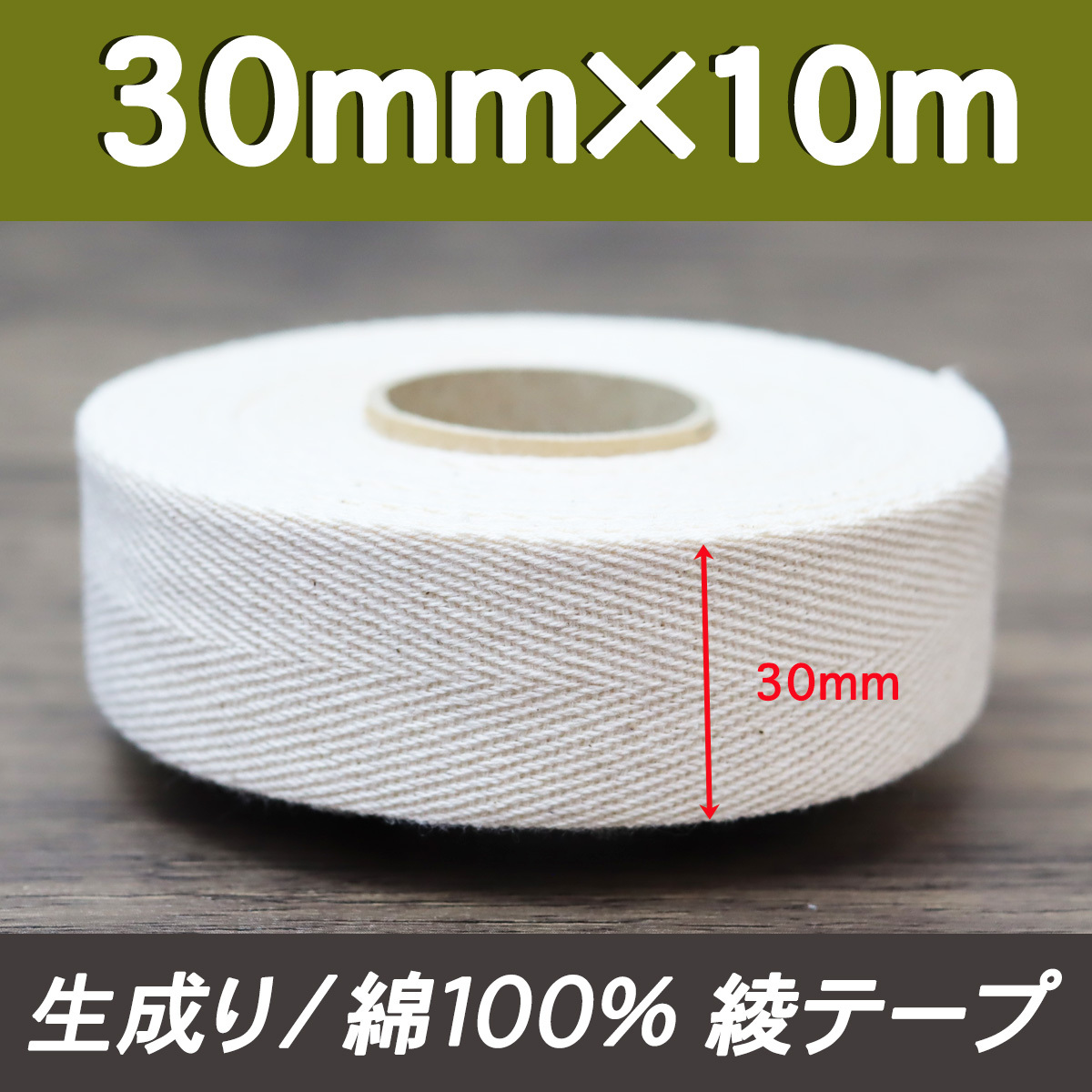 - 綾テープ 綿100 生成 コットン 30mm 綿テープ 生成 10m 0.6mm キナリ 手芸 クラフト ひも ハンドメイド バイヤステープ ミシン 匿名配送