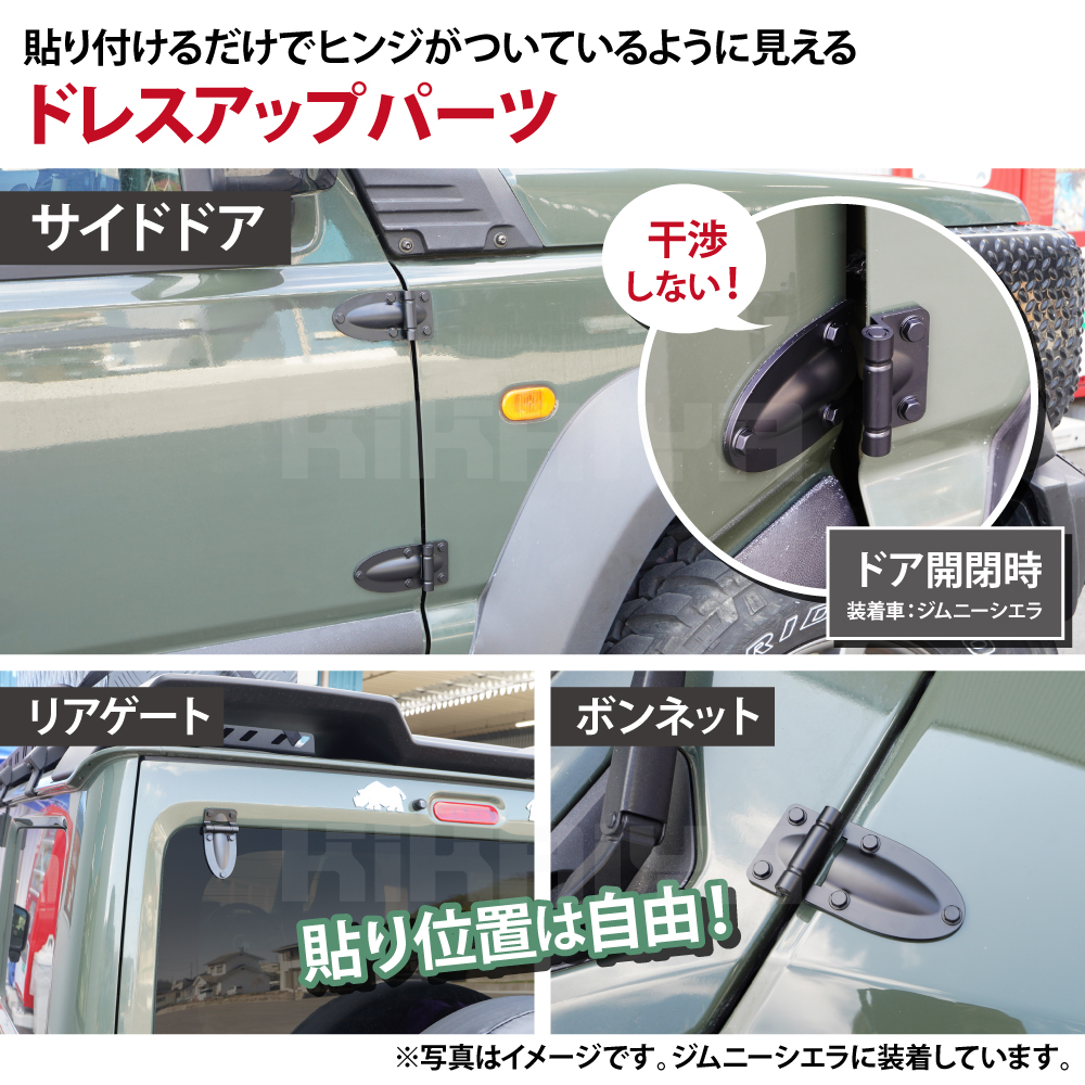 - ジムニー 5ドア ダミーヒンジ アウターヒンジ 8個セット マットブラック JC74 貼付タイプ 外装パーツ アクセサリー