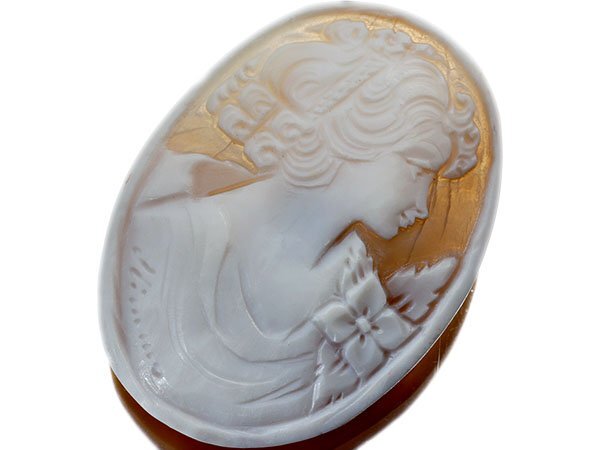 > 【ジュエリー極】作家品 サイン刻印有 凛々しい貴婦人 シェルカメオルース 50.7mm×37.5mm a2564-m【送料無料】