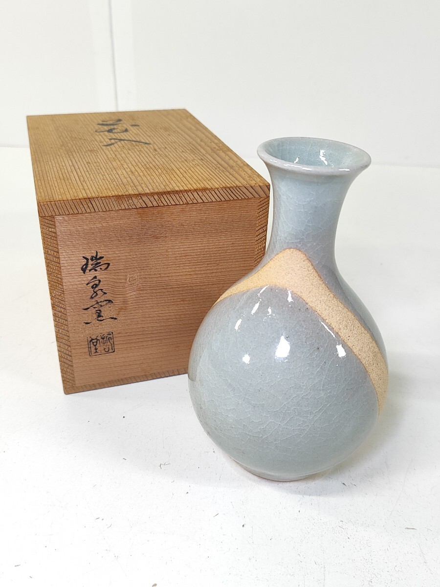 - t275 京焼 【端泉窯】尾関哲堂 花入 花瓶 花器 一輪挿し 花瓶 茶道具 壷 花生 華道 古美術 骨董品 時代物