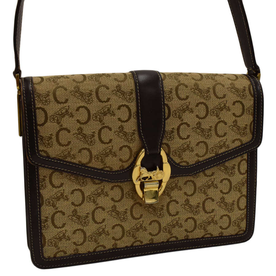- 1円■ 美品 セリーヌ ショルダーバッグ ブラウン系 キャンバス×レザー Cマカダム オールドセリーヌ CELINE ■E.Brl.tI-26