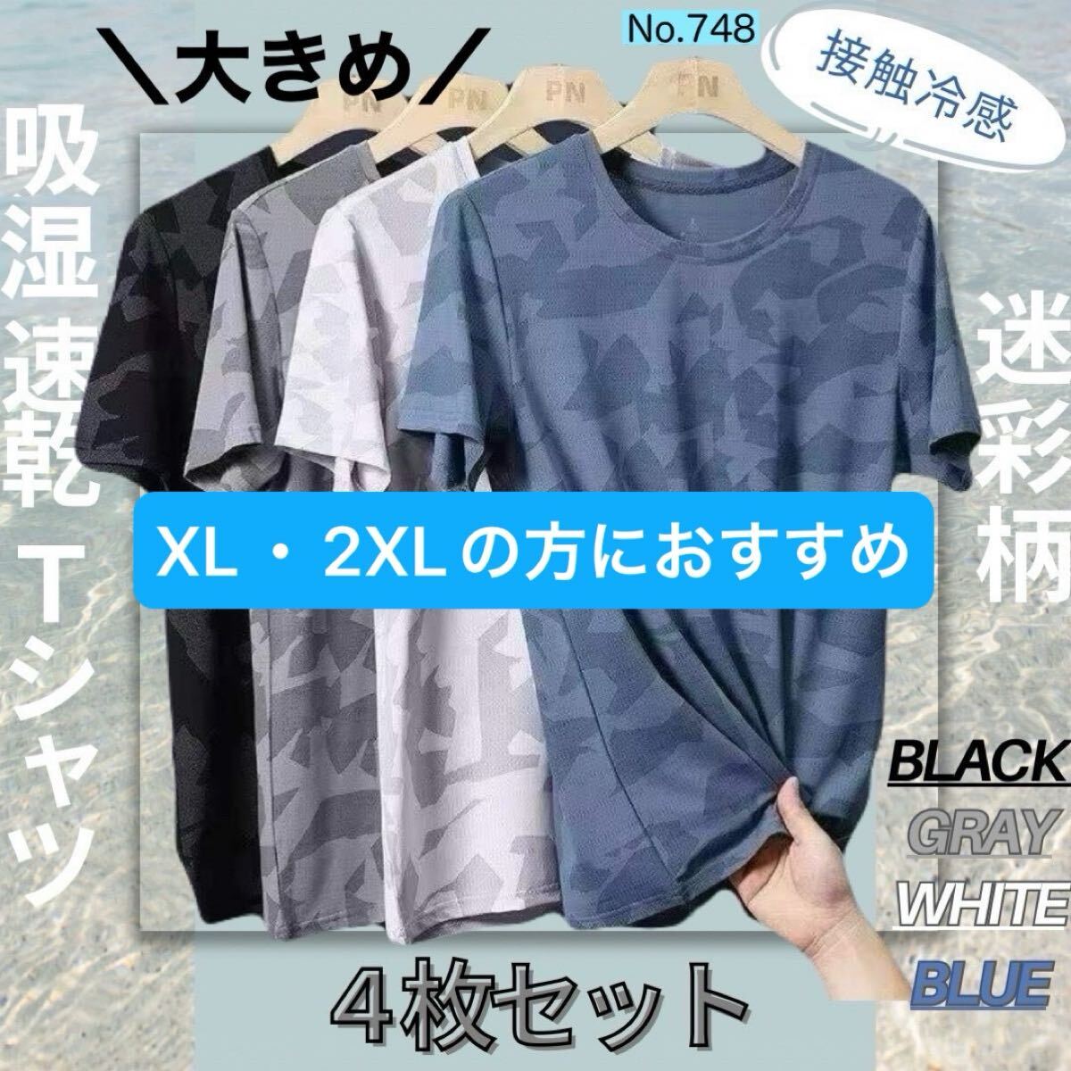 - 新品!大人気!大きめ 吸湿速乾 4枚セット 迷彩 夏用 Tシャツ カットソー 半袖 スポーツ 吸汗 接触冷感