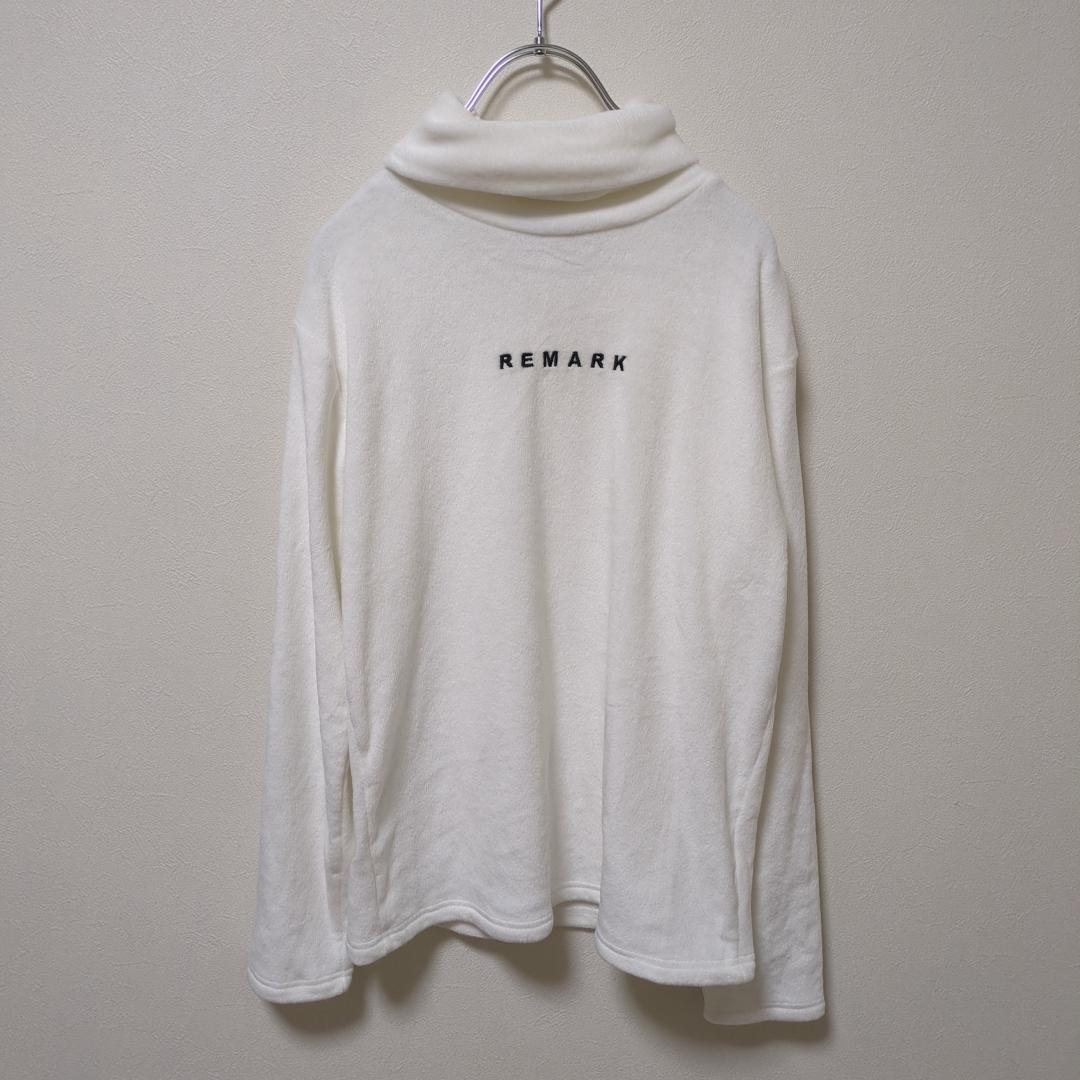 - フリースタートルネック(M)英字ロゴ*長袖*シンプル*伸縮性*トップス*無地*白