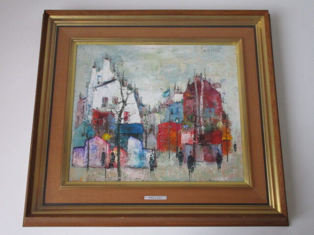 > 真作保証 モリーユ・プレボ MAURILLE PREVOST 仮題「 パリの街並み 」絵画 油彩 油絵 肉筆 F10号 額装品 フランス 抽象派 女流画家