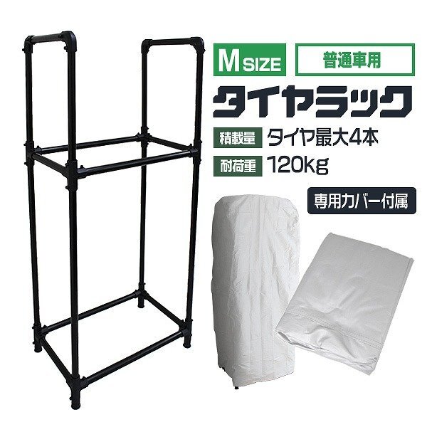 - 【カバー付き】タイヤラック Mサイズ 4本収納 耐荷重120kg タイヤ ラック スタンド 簡単組立 UVカット タイヤ 交換 保管 屋外 タイヤ置き
