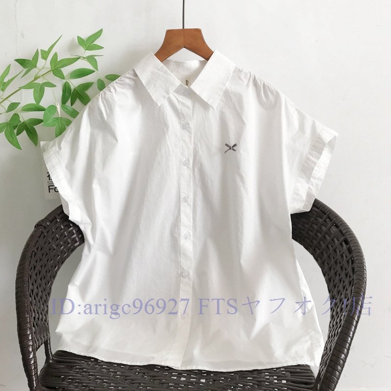 - ★新品チュニック トップス ワイシャツ 半袖 ゆったり 綿100% フリーサイズ ナチュラル 通気性肌触り抜群 ホワイト