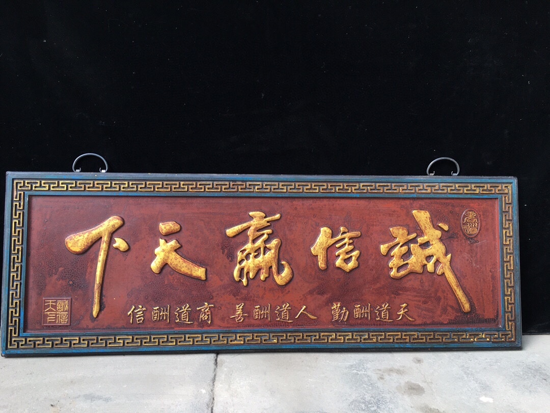 - 早期收集 旧藏 古木彫 誠信贏天下 壁挂 墻挂 中堂挂屏 賞物 極細工 古賞物 東洋彫刻 中国唐物 時代物 骨董 中国古美術