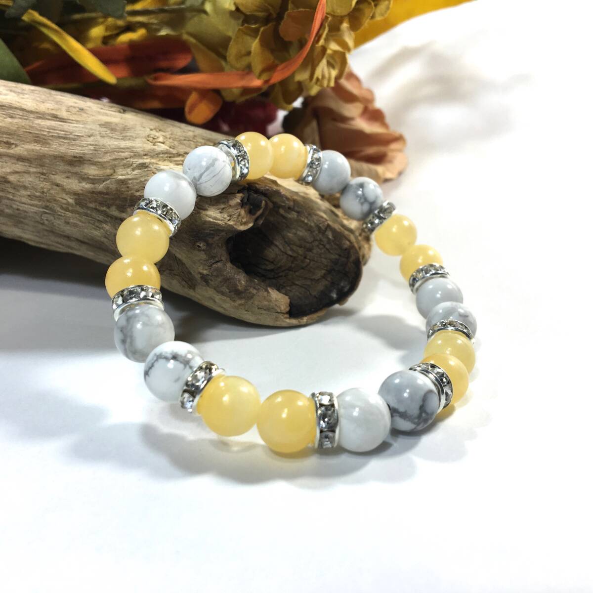 - ハウライト&アラゴナイト パワーストーン ブレスレット 天然石ブレス シルバー 8mm/ 浄化 癒し リラックス 恋愛運 効果 レディース 通販