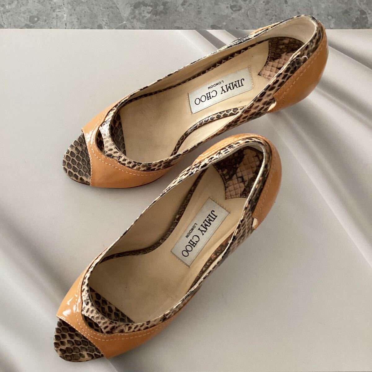 - JIMMY CHOO オープントゥパンプス オレンジ/ヘビ柄