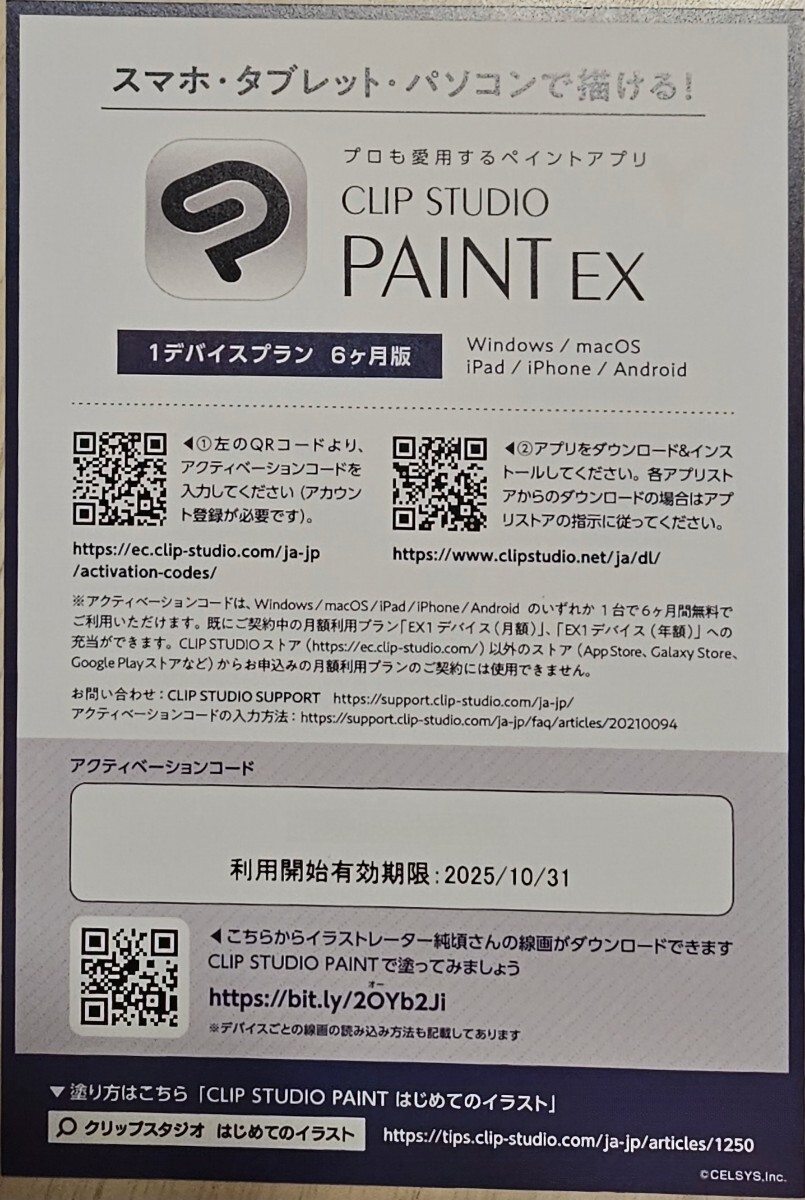 - 【取引ナビ通知送料不要】匿名コード通知 CLIP STUDIO PAINT EX クリップスタジオペイント ex 6か月版 セルシス 株主優待 2025.10.31期限