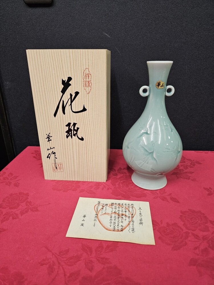 - 未使用 陶器 崋山作 花瓶 箱付き サイズ約高さ25cm ek3-67