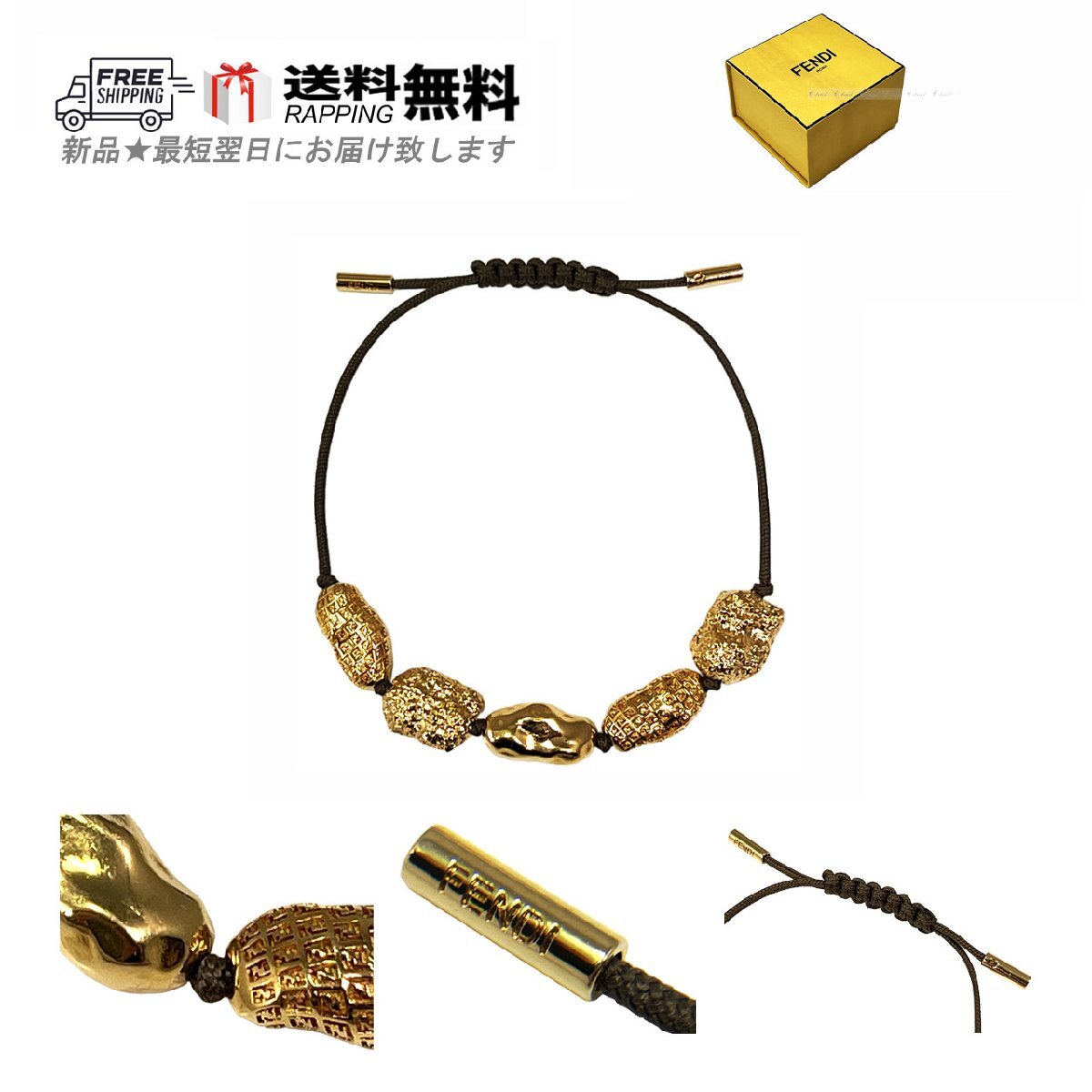 > L166.. FENDI フェンディ ブレスレット FF ピーナッツ コード ロゴ イタリア製 7AJ669AMTZF1AEY ★ ゴールド