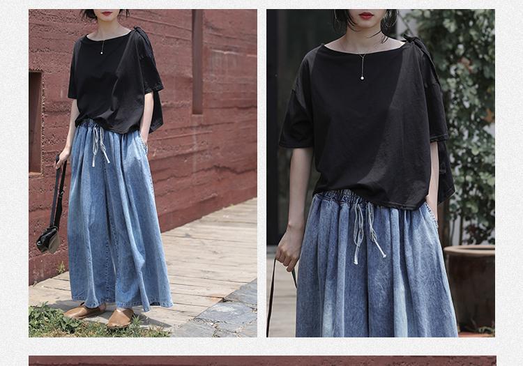 - デニム ワイドレッグ ワイドパンツ ジーンズ ガウチョパンツ オルチャン 韓国