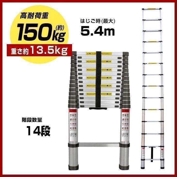 - 伸縮はしご 梯子 はしご 5.4m 伸縮 アルミ ハシゴ 屋根用 折りたたみ スライド式 安全ロック 耐荷重150kg 454
