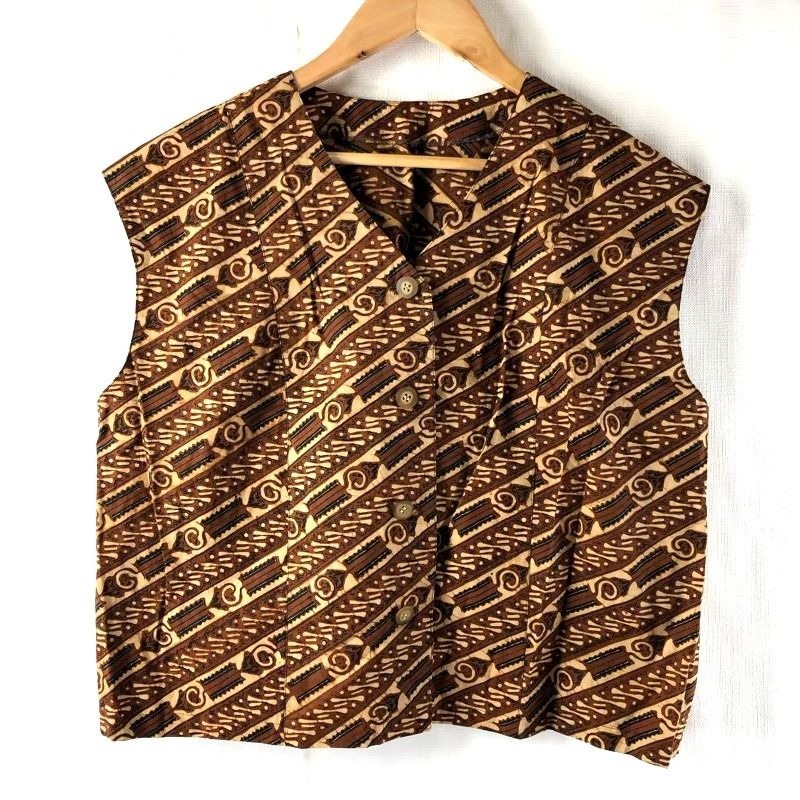 - ベスト 柄プリントフロントボタン Vネック ブラウン系 ベージュ系 2025090300135