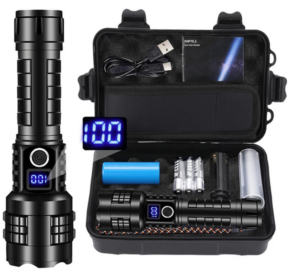 - 人気品LED懐中電灯 強力 超高輝度 50000ルーメン フラッシュライト 充電式 懐中電灯 led 強力 軍用 最強 ハンディライト 超強力ライト