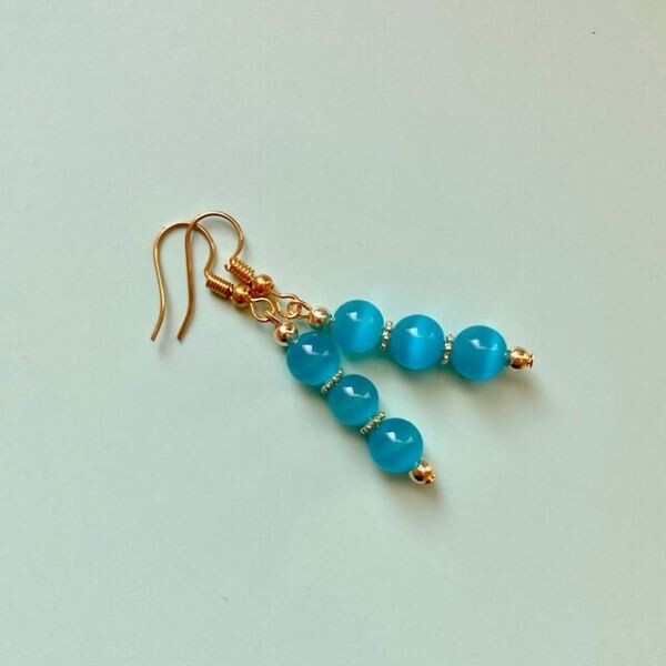 - キャッツアイ ピアス(ライトブルー) フックピアス 8mm (ゴールド) イヤリング、樹脂フック変更可 樹脂ピアス シンプル ハンドメイド
