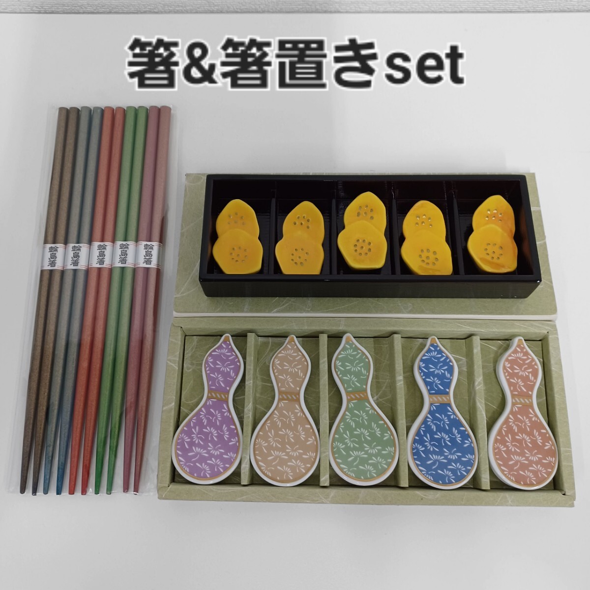 - 高)箸 & 箸置き 5膳 セット 輪島箸 乃りたけ 食器 カトラリー 和食器 まとめ売り 250930A3