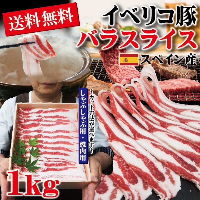 - 【送料無料】豚バラスライスイベリコ豚 焼肉・しゃぶしゃぶ用たっぷり1Kgベジョータ匹敵 【お中元 お歳暮 御歳暮】